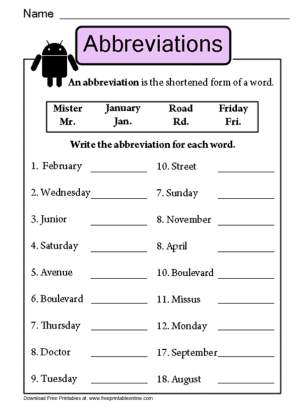 Printable Abbreviation Worksheet Second Grade / Abbreviations 2nd Grade By Live Love Laugh With Ms H Tpt /. What are some fun summer activities that help prepare your child for second grade? Is your child a second grader? Help students practice calculating fractions and percentages with these math worksheets for seventh graders. Teaching children to read is an important skill they'll use for the rest of their lives. Thank you for signing up.